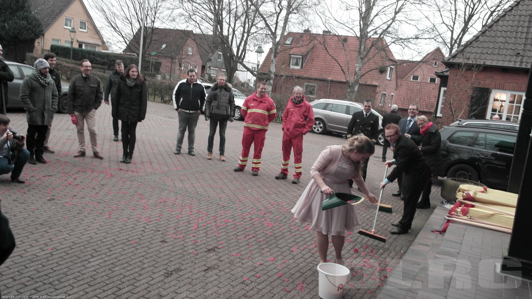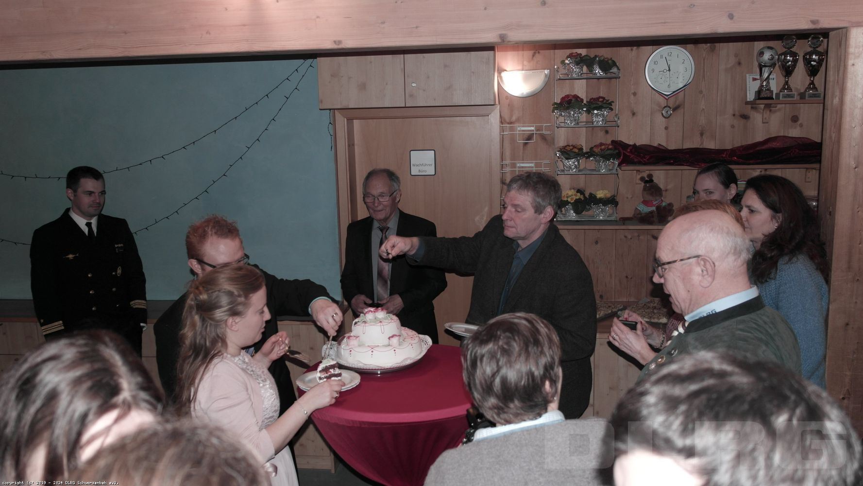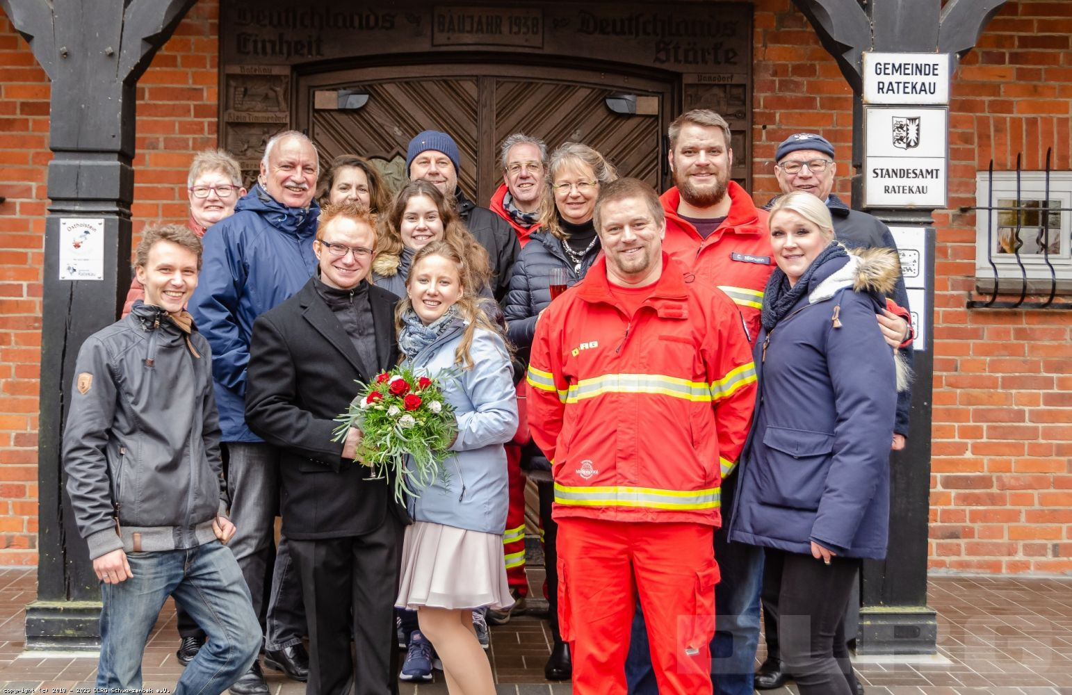 Kathi und Marcel gaben sich im Standesamt in Ratekau das Ja-Wort und wurden anschliessend von DLRG'len aus Schwarzenbek und Scharbeutz, sowie Arbeitskollegen farbenfroh empfangen. Mit Reiswurf, Seifenblasen, Blütenregen und kleiner Hürde wurde das Paar am Ausgang begrüßt und danach mit Sekt begossen. Per Autokorso ging es in die UK Scharbeutz zur Geschenkübergabe. Hier gab es nach weiterer Geschenk-Annahme und Glückwunsche eine Hochzeitstorte. Das frische Paar schnitt die Torte gemeinsam auf und verteilte sie an die Gäste. Es folgte ein neues "Hindernis" für die Beiden, eine große Anzahl von gefüllte Luftballons wollte "geöffnet" werden - per Schwimmflossen ! Nach kurzer Dauer lag der Zaster frei und Beide sackten es ein ! Jetzt war es an der Zeit die enge Hochzeitsgesellschaft zu verlassen. Anschließen wurde noch lang gefeiert ....