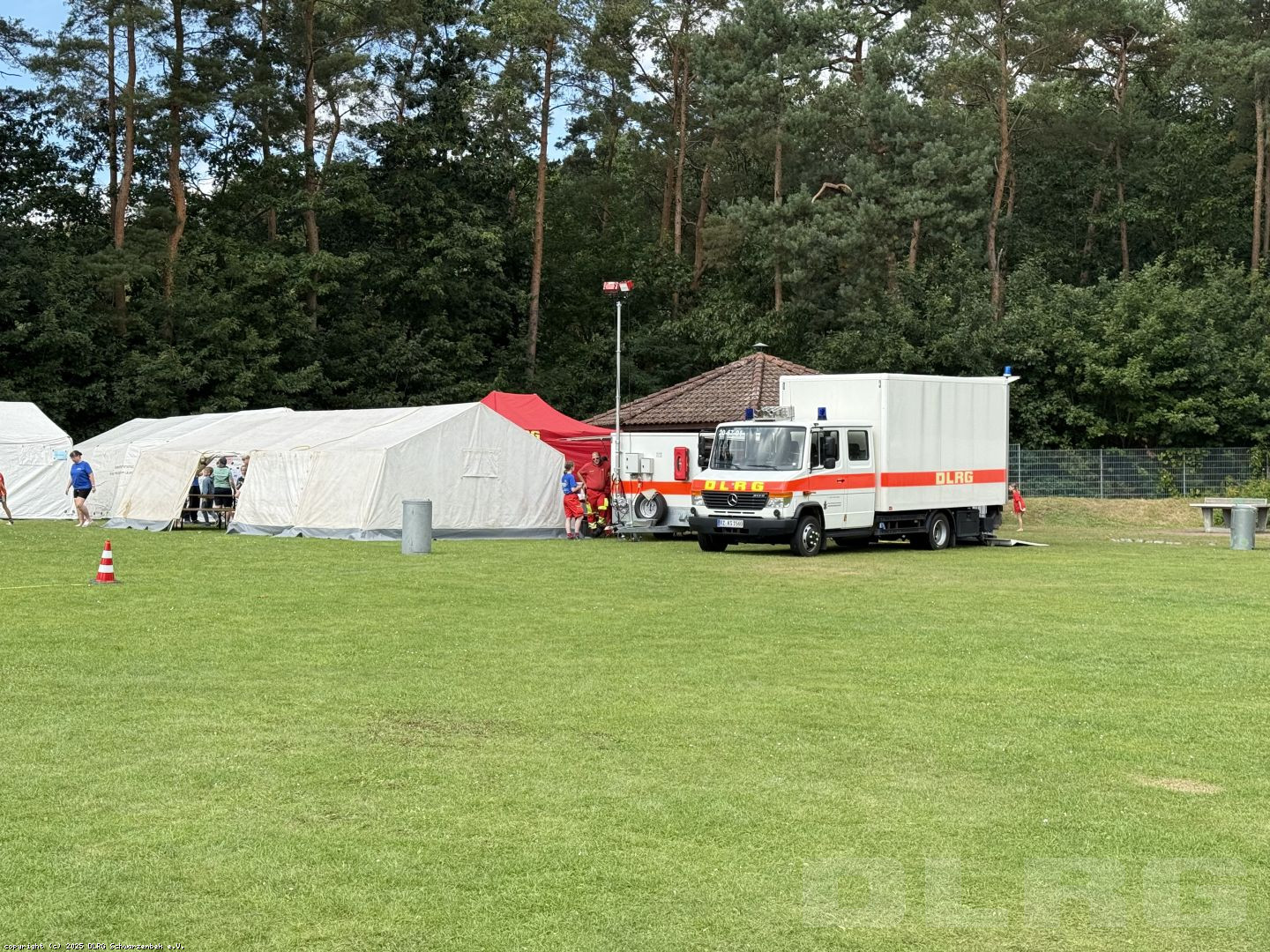 Was unsere eigene kleine Schwarzenbek'er Gruppe an Zahl fehlte, glich die große Kreisjugend locker aus. Zahlreiche Gliederungen aus der Umgebung waren vertreten und verwandelten das Freibad in ein quirliges Camp aus Zelten, Liegen und fröhlichen Gesprächen. Besonders gefreut haben wir uns über die Unterstützung des DLRG Ratzeburg, die uns komfortable Liegen und den Zelttransport ermöglichten.