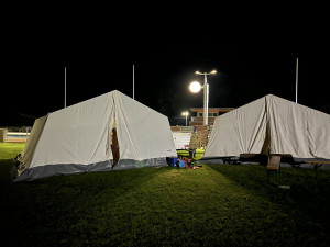 Der Auftakt am Samstag war gleich ein Abenteuer: Während wir – mit tatkräftiger Unterstützung einiger Eltern – unsere beiden Übernachtungszelte aufstellten, öffnete der Himmel seine Schleusen. Eine wahre Sintflut ging nieder, als wolle man die Becken noch vor Beginn der Veranstaltung ein weiteres Mal füllen.